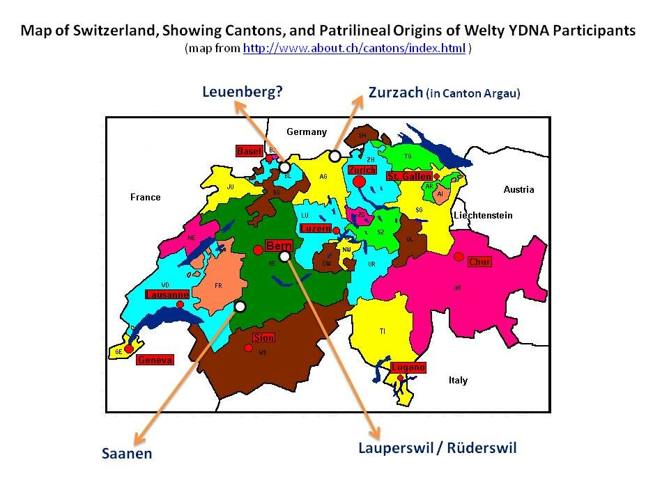 To see a map of Switzerland that shows locations of earliest patrilineages, please click here.